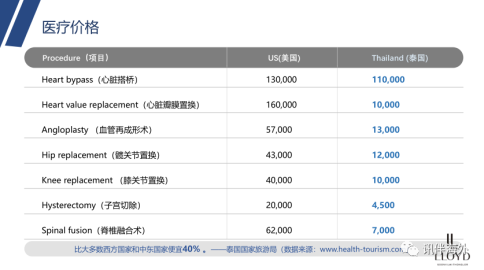 现在,泰国游览医疗营业每年创收超越1200亿泰铢,约合41亿美圆。获取世界有优秀性的美国JCI医疗机构认证的医疗机构就有53家(国内73家),为东盟国度的第一。泰国医疗程度如此**,如此看病贵不贵呢?价钱还真的不贵,乃至能够说十分昂贵。膝关节的置换手术费用在美国是3.4万美圆,而在泰国康民医院费用唯独1.59万美圆;较为高难的冠状动脉手术,在美国的收费为4.1万美圆,在泰国仅为4150美圆,几乎唯独美国的非常之一。这也难怪越来越多的西欧人士选取到泰国接受医疗手术。乃至连许多中东的土豪国度,都会把全民医疗服务都搬到泰国。举个例子,泰国第三代试管婴儿医疗费用大约在9-10万,仅为美国等发达国度的1/4到1/3。