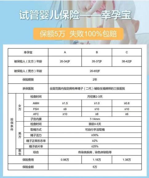 广泛状况下咱们做试管,一次两次不顺利是很常见的事!!不顺利,那也就标志着,钱花了!怀孕的事仍旧遥遥无期。假设要想提升顺利率,这个时候医师也许会奉告你,不要被一两次的落败打垮!绝大多数夫妇都可以在3次IVF治愈中变成父母!只需不中止治愈,保持做下去,咱们都有也许顺利做爸爸妈妈。理论上是如此,有人做了三五次、两三年后怀上了,经济上、肌体上、时间上的耗费,不是每个家庭都能负责得起的。4.须要额外手术除了个别由于不明原因造成不孕外,大部份选取做试管,还是由于肌体重病。为了试管流程的顺遂,有类须要提早进行手术治愈,像宫腔镜手术,子宫内膜息肉严重的也须要**行手术切除。还有许多牵连试管顺利率的重病,如宫腔粘连、慢性盆腔炎、输卵管炎等重病,也是须要先做许多额外的治愈,再进行试管婴儿手术。这类治愈费用也是试管婴儿开支的一部份。况且手术以后,肌体也须要1个修复的流程,时间周期也会延续。备孕虽是2个体的事,而在如此长的流程中,女性肌体上承受的苦痛,并且面临各类突发原因时的生理改变,通常全是女性1个人独自撑着。综上所述,市场急需试管婴儿商业保险来弥补市场空白,可是为什么这种保险成品少之又少呢?从患者角度来讲,一款好的保险成品,须要具有下列几个特点:门坎低、保费低、保额高、易理赔、有信用背书等等。从保险企业的角度来讲,一款好的保险成品须要具有下列几个特点:易推行、受众广、成品接受度高等等。患者和保险企业的诉求到达平衡点,这款成品才能经受住市场的磨练。可是试管的高落败率危害,加上试管人群相对小众,造成了此类成品要么保险企业赔的一塌糊涂仓促下架,要么成品设置不合理,完全无法到达患者的生理预料。现在市场上较为成熟的试管婴儿保险,我给大家发出去仅供考虑